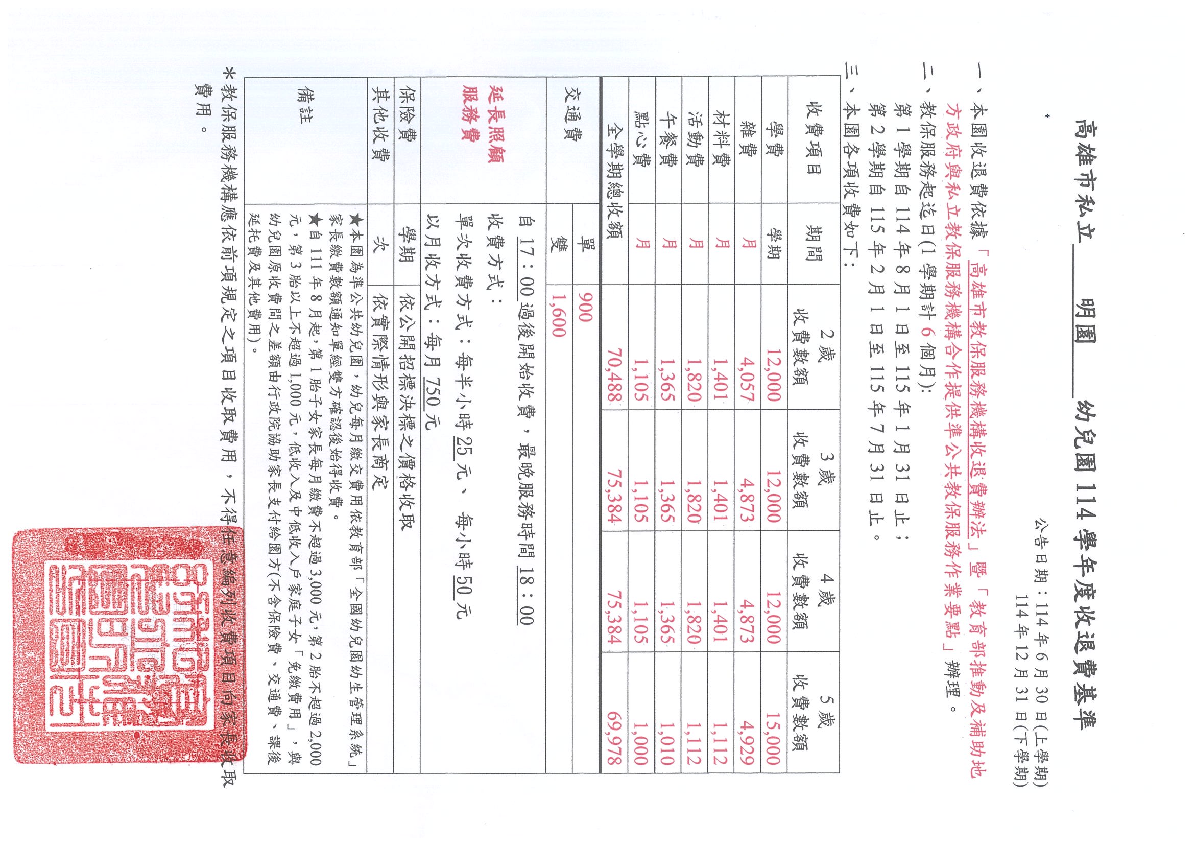 114學年度收退費說明(下學期)